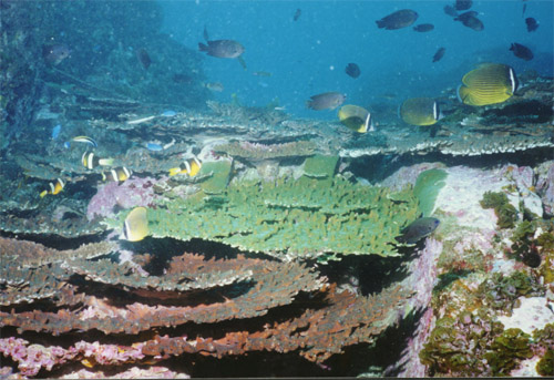 写真−3は移植後、誤ってアンカーを落とし、サンゴが壊れました。