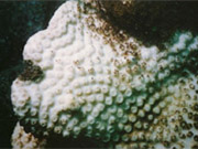 写真−1、写真−2、写真−3は、平成13年9月6日の、高知県西部集中豪雨で長期間さらされたサンゴ。 |